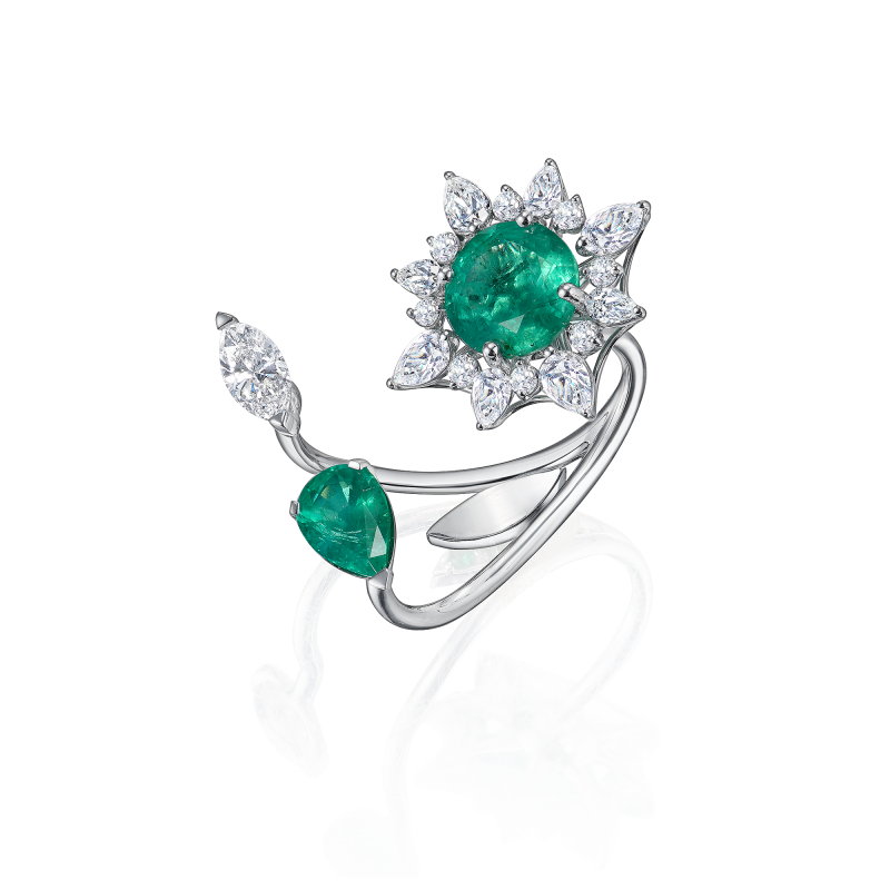 Изумруды огранки груша и круглой огранки. Бриллианты огранки груша, маркиз и круглой огранки.
