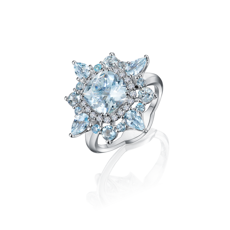 Кольцо с аквамаринами и бриллиантами